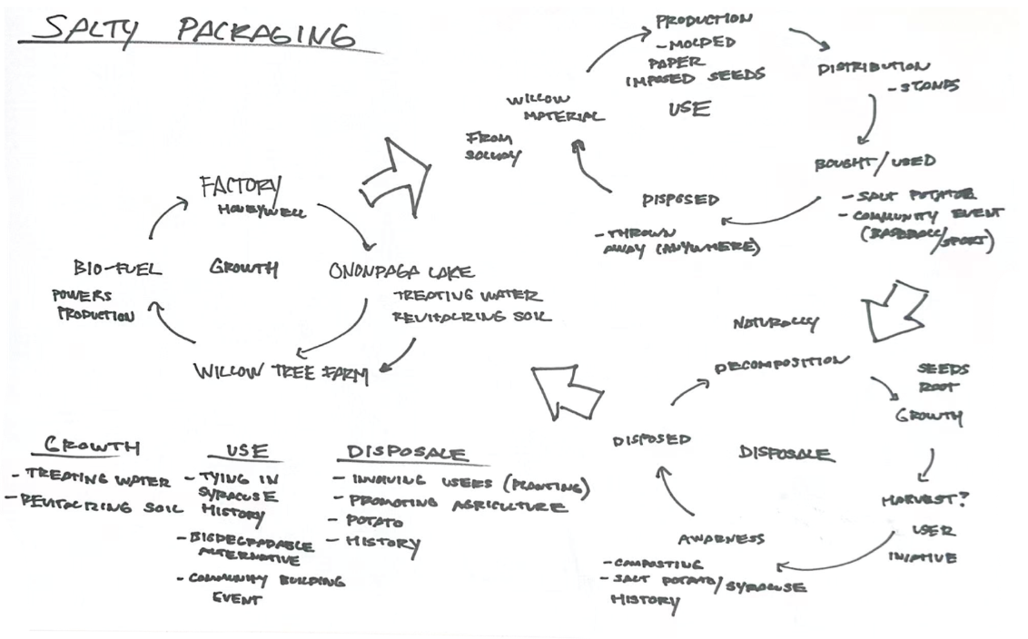 How might we reimagine high-volume packaging to be more sustainable in our local community, using material sourced from the Lake Onondaga revitalization farm?