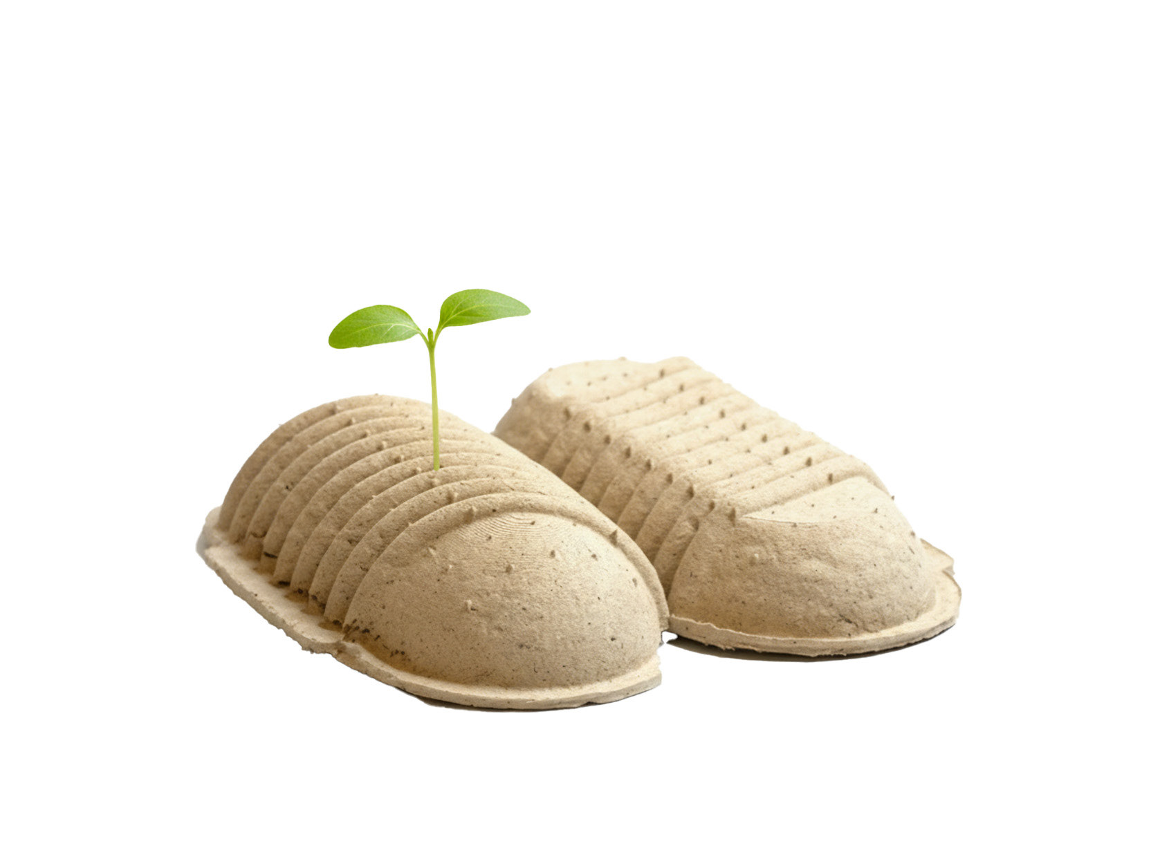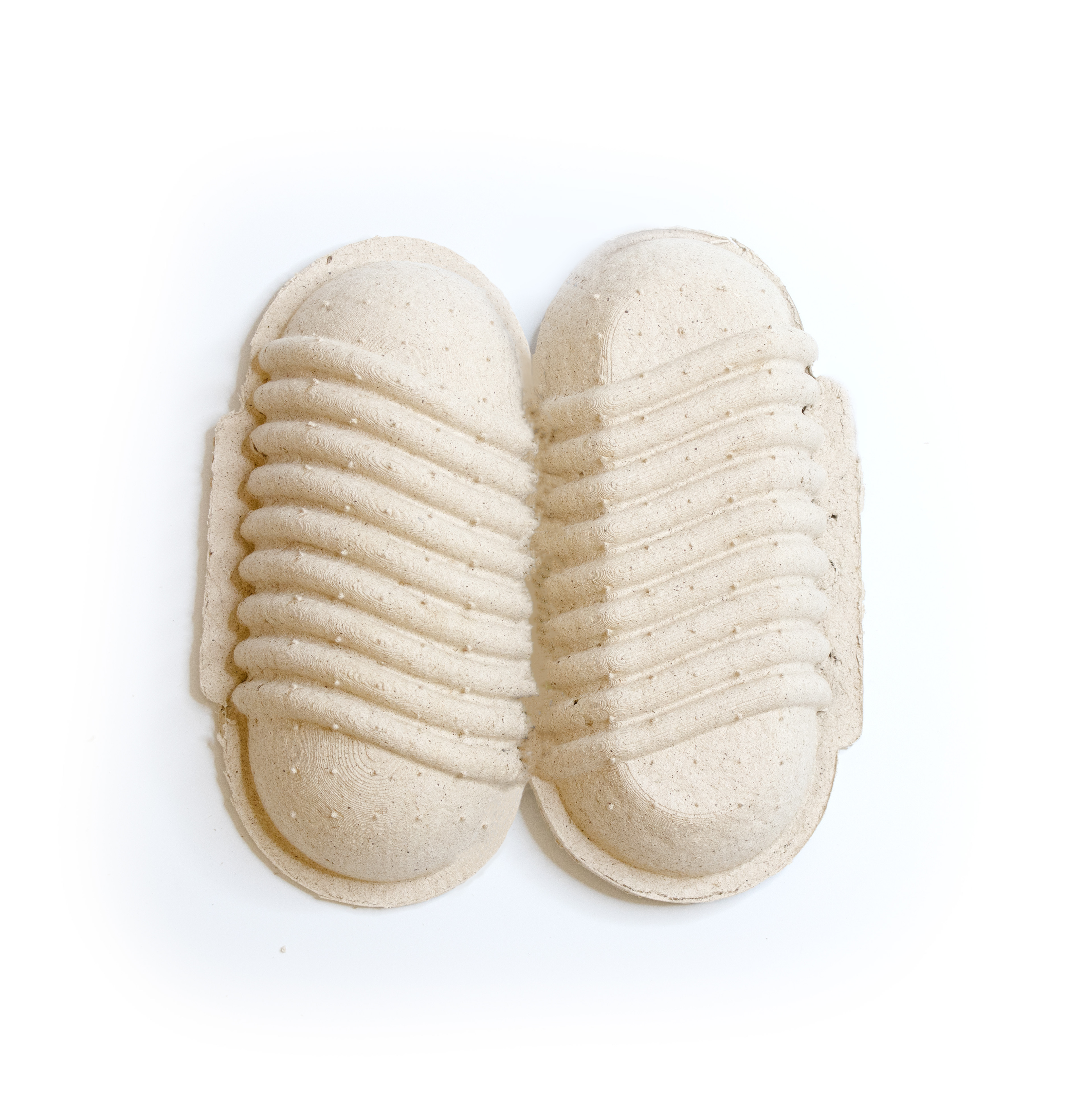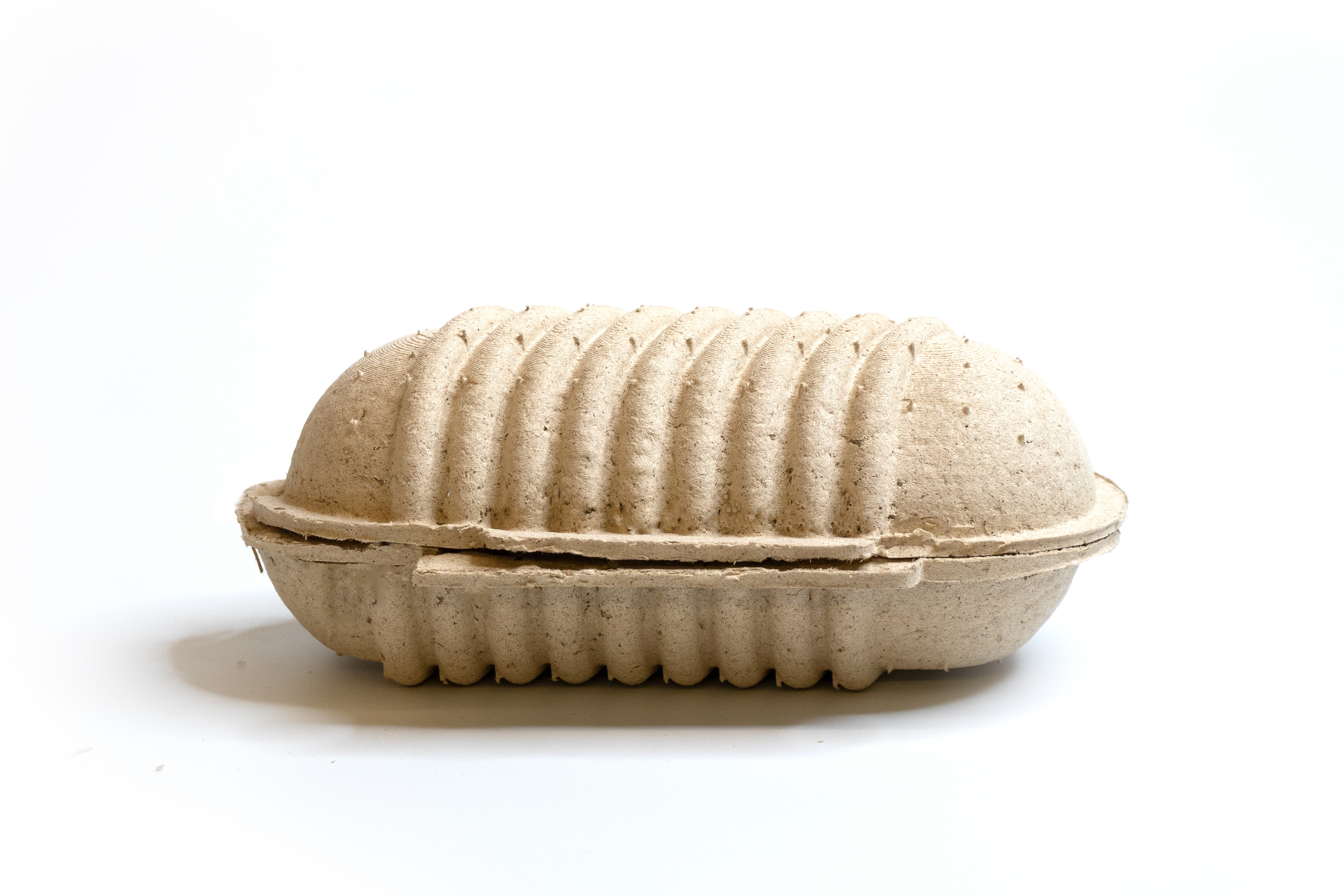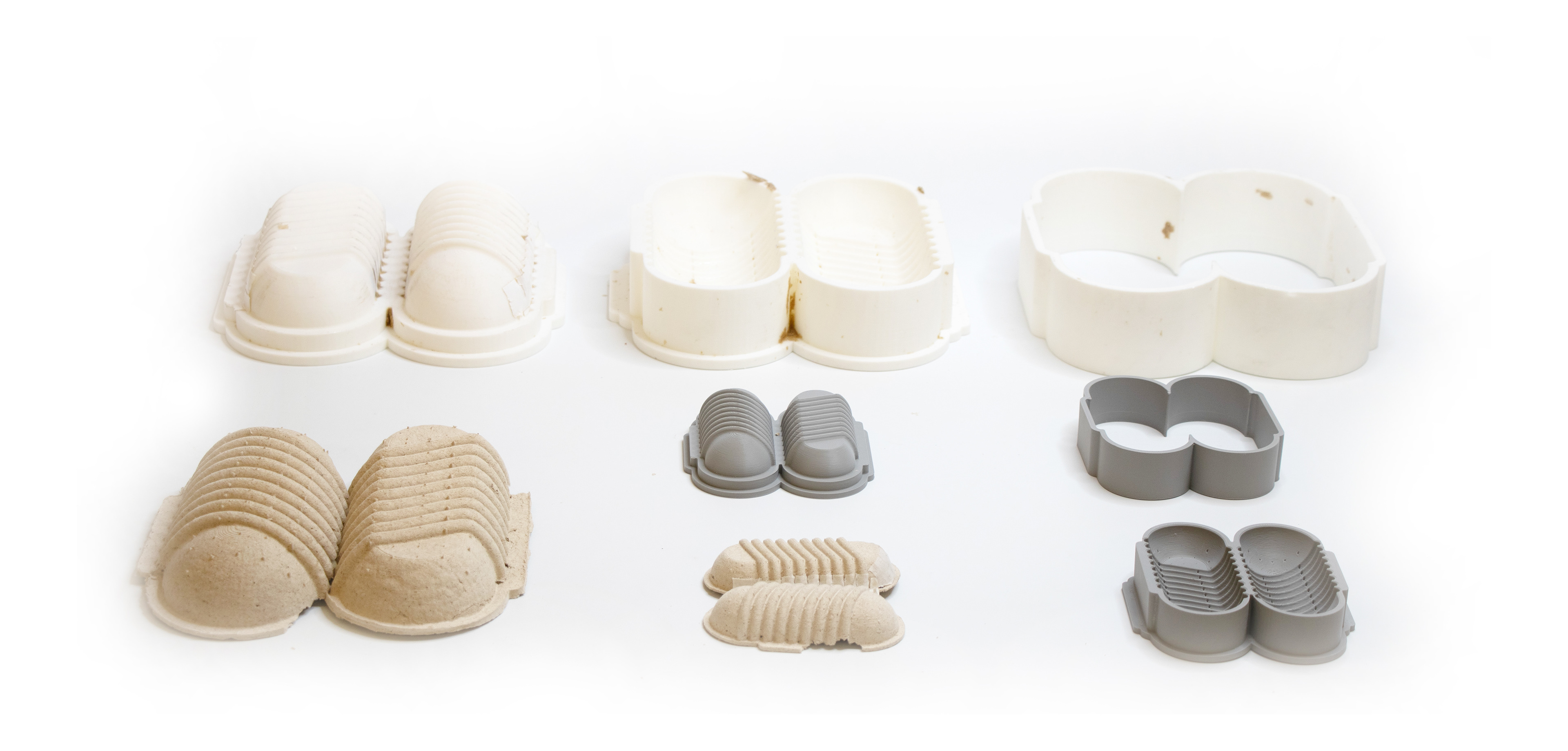 Seed Shell was created with a 3-part 3D printed mold consisting of a wall, positive, and negative piece. The packaging is made from willow pulp, bound together by rice paste, a biodegradable binding element, and vegetable seeds.