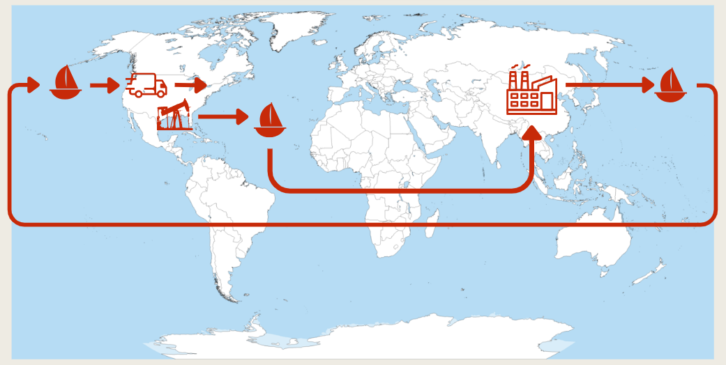 Most plastics are made from natural gas liquids, which are extracted through fracking in the US. These oils are then sent to international manufacturers. Currently, China is leading as the world’s largest plastics producer, and most plastic food containers come from China, Mexico, and Vietnam.